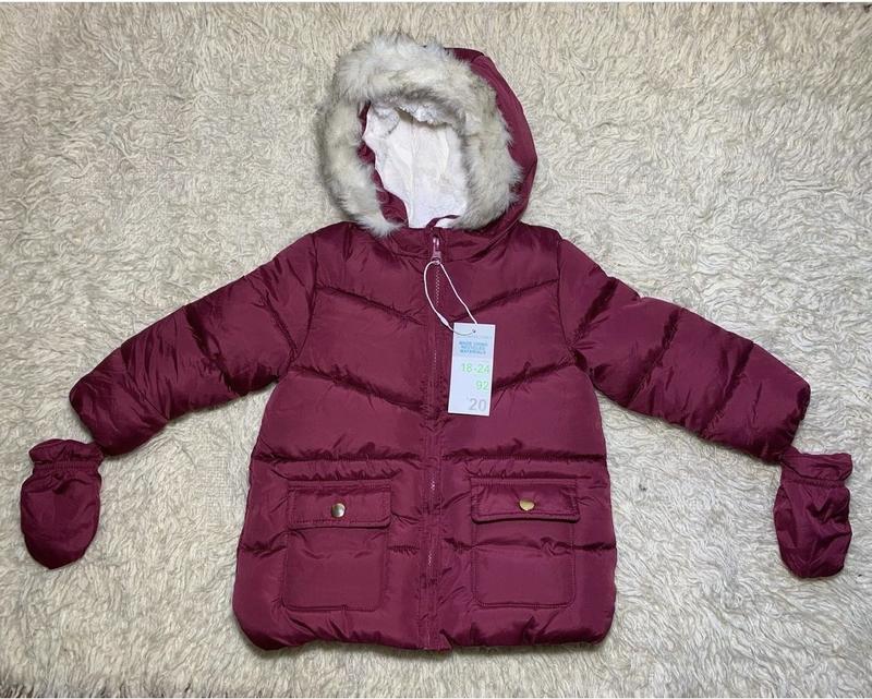 Дуже класна тепла курточка для дівчинки від популярного європейського бренду ❤️Primark❤️ Курточка має капюшон, облямований хутряною опушкою і всередині утеплений. Капюшон не відстібається. Підкладка хутро+синтепон. Курточка застібається на блискавку. У комплекті йдуть рукавиці. Рукава на гумці. 🍂☃️🌼Сезонність: Осінь/Зима/Весна Виміри: ✅92 см(12-24 міс)✅ 🧵ПОГ-34 см; 🧵ПЛЕЧІ-27,5-28 см; 🧵РУКАВ ВІД ПЛЕЧА-32 см; 🧵ДОВЖИНА ПО СПИНЦІ-40 см 🧵НИЗ КУРТОЧКИ-37 см