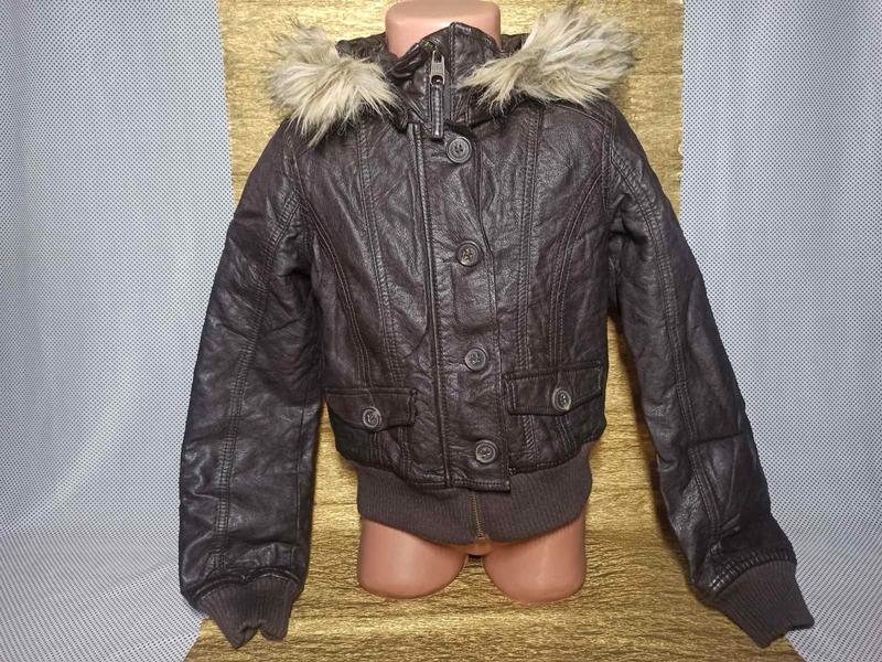 Очень красивая и стильная курточка под кожу. Пог 35см, рукав 50см, длина по спинке 40см. Капюшон съёмный