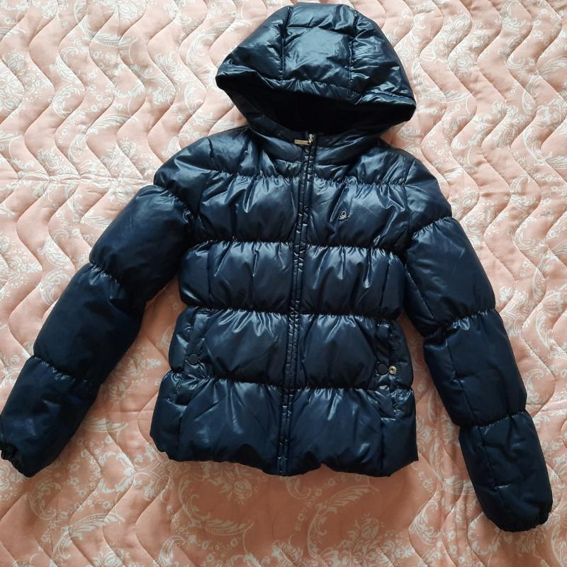 Куртка после моей дочери в идеале. Фирма: United Colors Of Benetton Размер: 9/10 лет. Рост 140. Как по мне маломерит. Ориентируйтесь на замеры. Наполнитель: пух/перо Носили в нехолодную зиму,холодную весну/осень. Замеры: Плечи 35,5 пог 43 рукав 57 длина 52