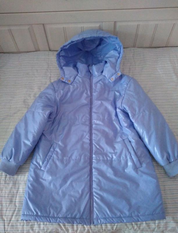 Куртка оверсайз із приспущеними широкими рукавами та манжетом. Виглядає ніжно . Колір реальний останні три фото-блакитний перламутр з переливом. Довжина 72см груди 45 рукав 48 плече 14 рукав від горловини 61-62.