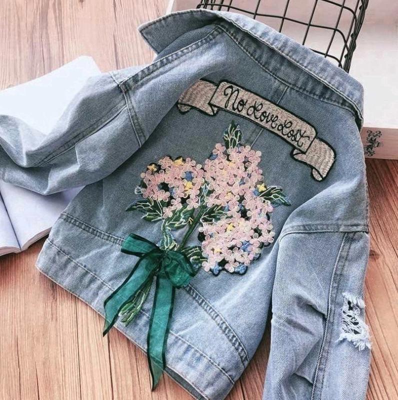 ✅В НАЯВНОСТІ✅ ✍🏻Стильна джинсовочка ✍🏻ззаду яскрава нашивка з бантиком ✍🏻матеріал-джинс, застібається на металеві гудзики ✍🏻завмер рукава від горловини ✅РОЗМІРИ: 📝110р - 20шт 📝120р - 30шт 📝140р - 20шт ✅ВИМІРИ: 📝110р(арт9) - довжина 36см, ширина 35см, рукав 45см; 📝120р(арт11) - довжина 41см, ширина 38см, рукав 49см; 📝140р(арт15) - довжина 45см, ширина 39див, рукав 52см;