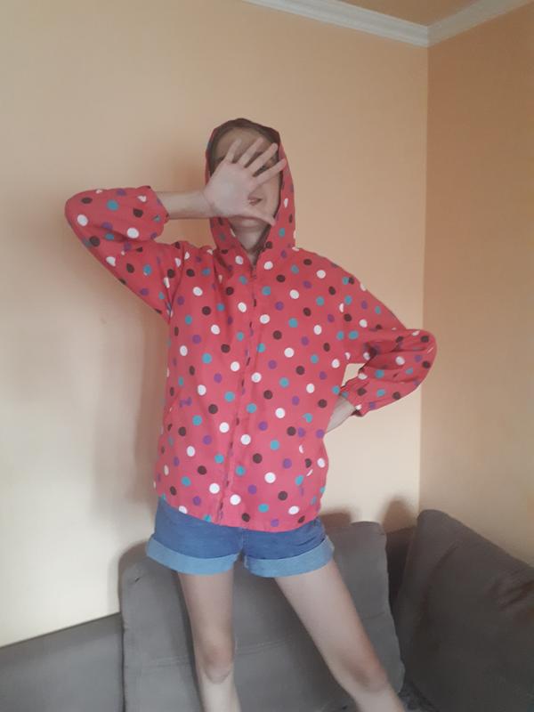 Легенька курточка дощовик з капюшоном. Чудовий колір,універсальна модель. Пів об'єм Плечі 40 см ПОГ 46 см Довжина 62 Рукав 50 см