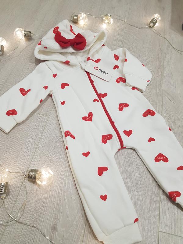 Милий комбінезон на легкому начосі. Гарний бант і вушка на каптурі Розмір 4-6 міс. Заміри надам за запитом.
