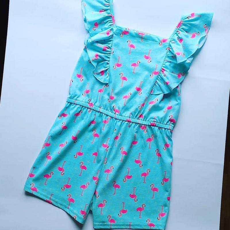 яскравий, невагомий літній комбінезон з принтом фламінго. стан Нового довжина 56, талія-29 резинка