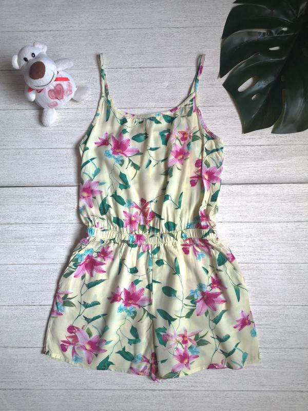 Тоненький літній комбінезон з шортами у квітковий принт.