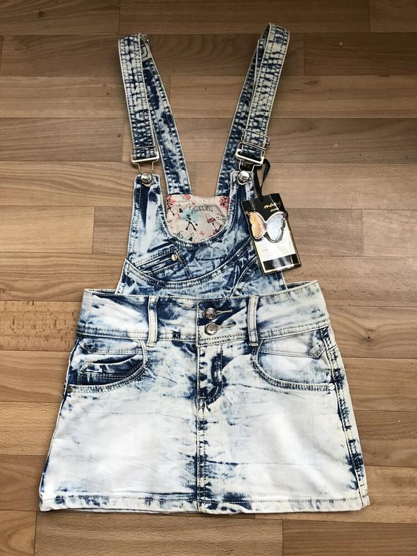 Джинсовий сарафан на дівчинку від бренду Many &many. Колір голубий. Розміри 134,140,146р. Модель виконана із джинсовоі тканини. Брительках регулюються і відстібаються. Склад:100%джинс.