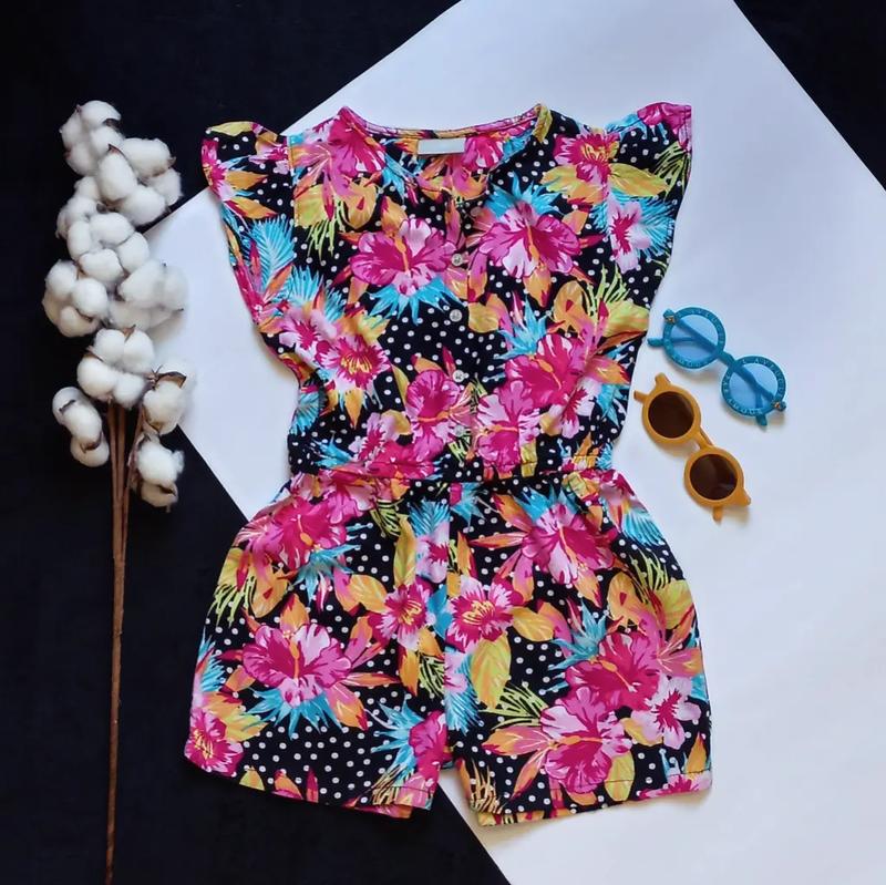 Комбінезон-шорти з яскравими квітами легкий,тоненький ✔️ 8р ✔️ Ідеал має біля ґудзика нюанс-останнє фото ✔️ довж-60, талія-28 резинка