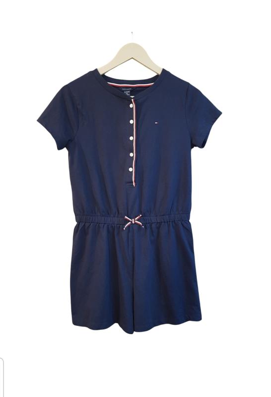 Трикотажний ромпер синього кольору від Tommy Hilfiger. В стані нової речі, без вад. Дуже красиво сідає. Стильна, сучасна, зручна річ. Розмір - дитячий XL, тобто підлітковий, десь на 12-16 років. Довжина повна 74 Довжина до поясу 41 Довжина від поясу 33 Довжина до крокового шва 68 Посадка шортів спереду 27 Посадка шортів позаду 33 Плечі 35 ПОГ 41 ПОТ 36 (тягнеться до 48, резинка) ПОБ 46