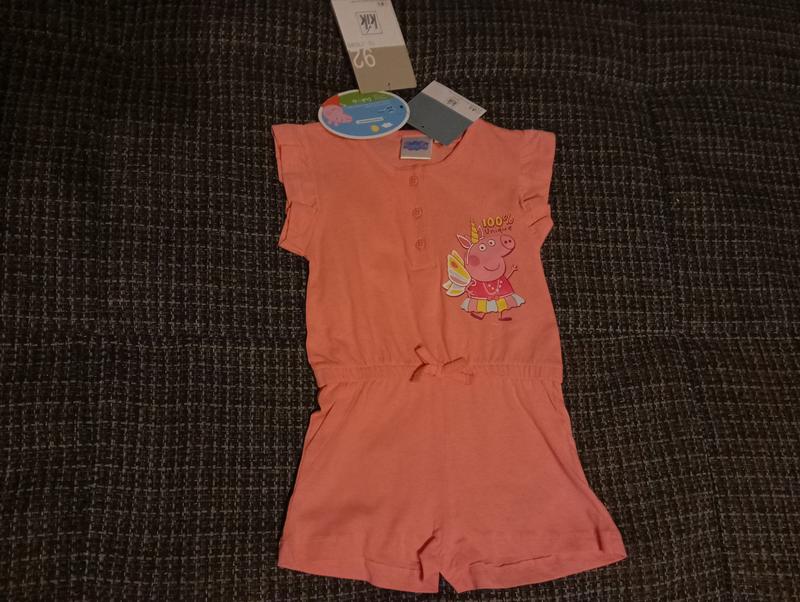 Класний,новий,фірмовий, приємний до тіла комбезік з карманами з х/б трикотажу на кожен день.Зручний, якісний.Довжина від плеча до низу -47см, довжина рукава -2см,Пог-27см,Пот-25см,Поб-29см.
