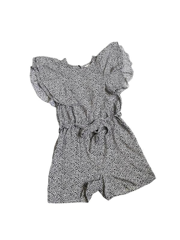 Дуже гарний комбез під пояс, спинка із розрізом та пишні рукава Заміри: пог 40, пояс резинка 32, стегна 46, довжина 72, посадка шорт 31/36 Бірка із складом зрізана, схоже на віскозу/ бавовну