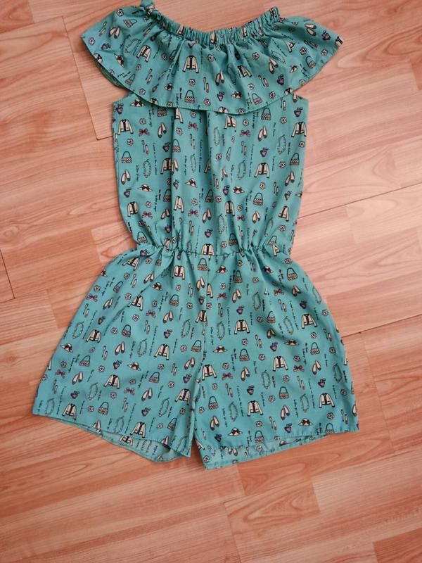 Продам ромпер на рост 122-128 см., если девочка худевая то будет и дольше. Ткань очень легкая, не парит. Цвет бирюзовый. ярче, чем на фото. Дир и пятна отсутствуют. Длина полностью от плеча 66-67 см. От горловины до пояса 32 см. От горловины до паха 56 см. Ширина под подмышками 34 см. Пояс резинка. Обмену и возврат нет, задавайте вопросы всем ответьте. Оплата на картку Приватбанку. Доставка УП,НП оплата при получении.