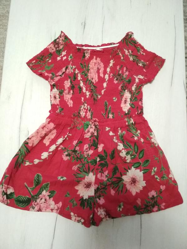 Ромпер для девочки в цветочном принте, Next плечи приспущены, верх на резинке, не растянутом, рукава реглан, состояние нового,состав 100% вискоза, на 4 года, на рост 104 см, замеры: длина 49 см, поб груди 26 см, поб талии 25,5 см, поб бедер 36 см,