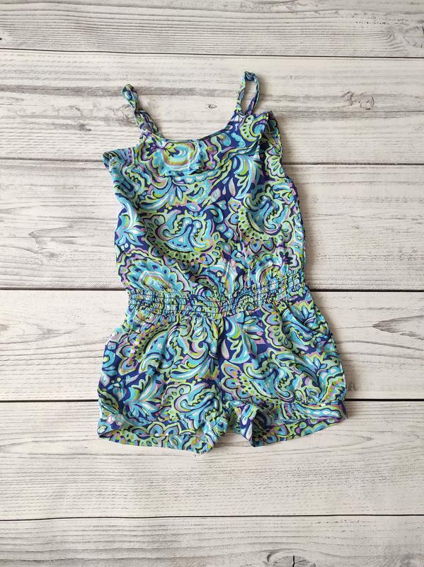 Ромпер 6л, буде на р. 110 Заміри: пог 28 см, пот 28-33 см (гумка), побіди 40 см, довжина 57-63 см (регульовані бретелі). Спереду підшивався по центру оборочки, в ціні врахувала. Легкий, невагомий, виручав в дуже жарку погоду.