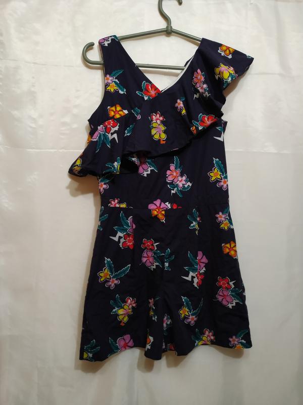 Дуже крутий ромпер (комбінезон з шортами) Виконаний з бавовни темно-синього кольору з принтами яскравих кольорів. По верху по внутрішній частині є підкладка Стан нової речі!)