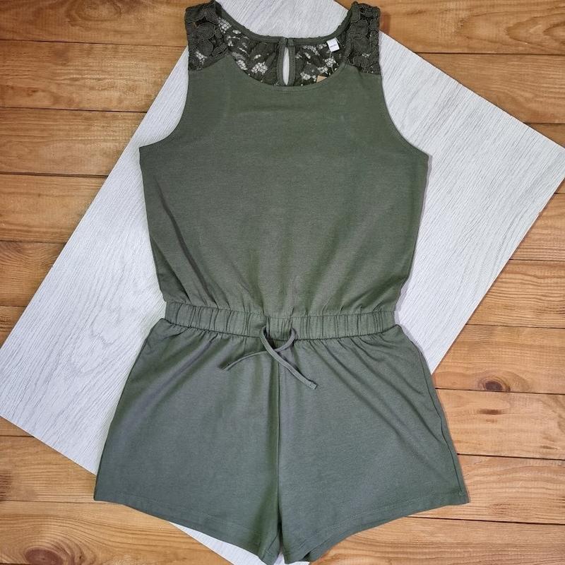 Легкий літній ромпер для дівчинки. Не замінима річ у літньому гардеробі юної модниці! Колір: Хакі. Склад: 95% бавовна, 5% еластан. Ріст 146-152 (11-12 років) - Довжина від плеча 68 см, ПОГруди 37 см, ПОТалии 29 см, посадка спереду від горловини до шва 56,5 див.