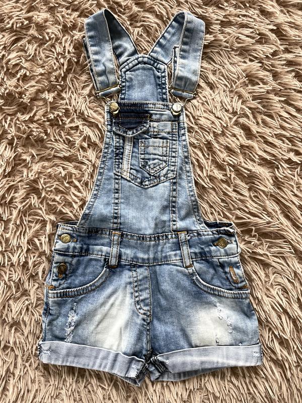 Ромпер з м’якого джинсу на 3-4 роки, довжина регулюється, стан нового, носили дуже мало (колір вживу насиченішого кольору як на 5 фото)