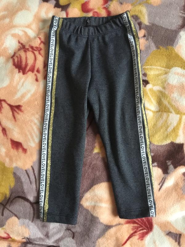 Нові лосіни з лампасами розмір 92, не одягали. Єдиний нюанс, дірочка на поясі, на фото показала. Довжина 46 см Крок 29 см Пояс 19 см Виробництво Турція
