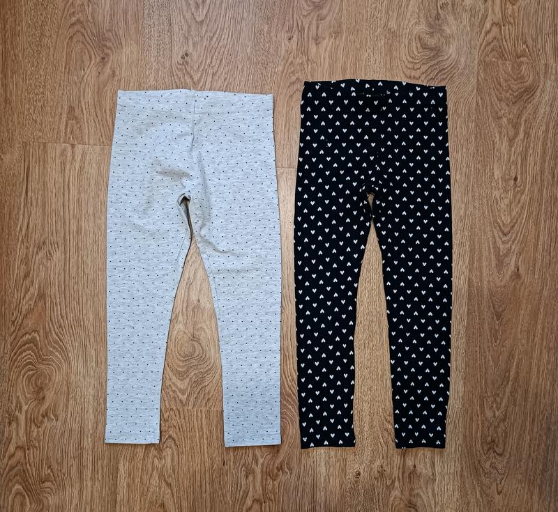 Ціна за 2шт. Лосіни в ідеальному стані без дефектів. Натуральна тканина,чудово тягнеться. В сердечко : довж. 61, шаг 44, пояс резинка 25+тягнеться до 31, посадка перед 17,5 Сірі в горох: довж. 60, шаг 45, пояс резинка 27+тягнеться до 35, посадка перед 17.