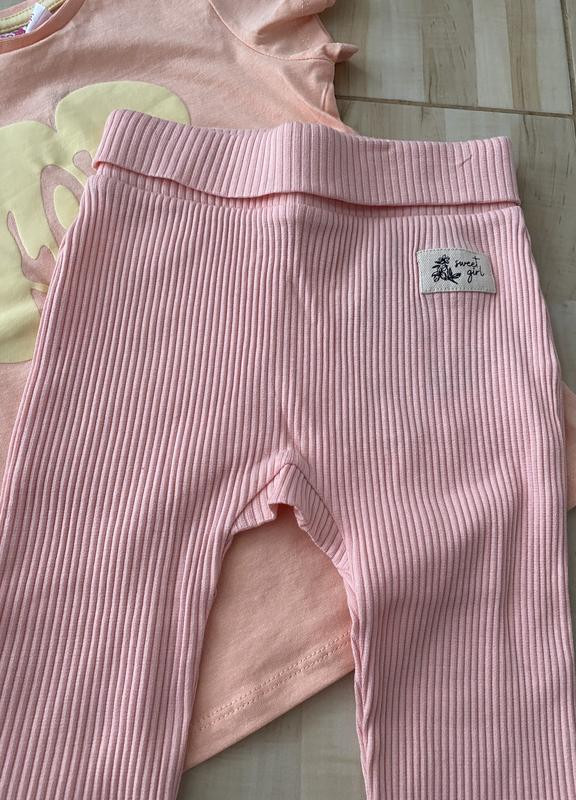 Лосини в ніжно рожево-абрикосовому відтінку в рубчик на широкій резинці з підворотами .,зріст 92 на 18-24 міс. Довжина -48,5 Шаговий -27 см Ширина в поясі -24 см (тягнеться до 30 см ) Ширина по попі -26 см Ширина штаніни 10 см ,внизу 9 см Висота манжетів 3,5 см ,заміри з урахуванням манжетів