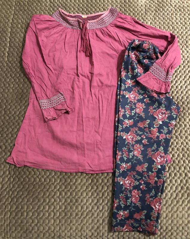 При покупці лосінок кофтинка в подарунок, якщо підійде по розміру! Вік вказано 7-8 рочків. Заміри надам! Тунічка котонова, лосінки тягнуться