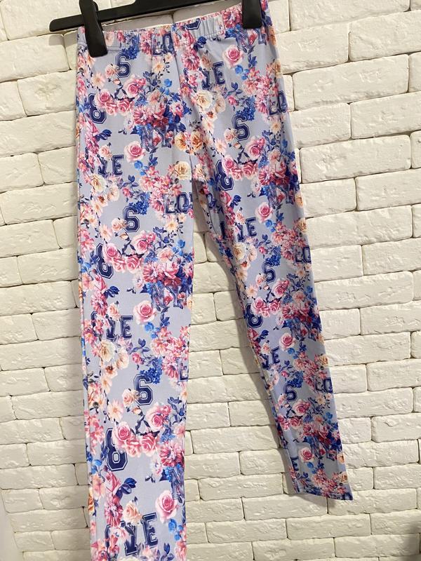 Дитячі лосини,ніжний колір,у квітковий рисунок,єластичні,трикотаж,талія на резинці