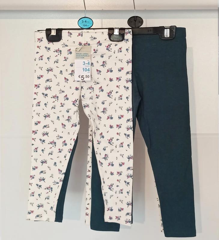2 лосин леггинсов из хлопка, белые с цветочками и зелени. Известный бренд Примарк, из Испании. Качественные, замечательные вещи для детей 92,98,104,110,116,128