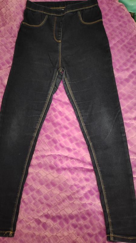 Джинсовые лосины. Тягнуться. Стан - идеальный. Цвет камеры не передает, темно-синий. Размер 140-146см Замеры: в поясе 29 см, общая длина 86 см.