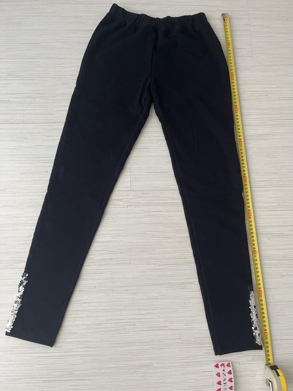 Трикотажные, утепленные леггинсы польского в-ва; цвет черный, сзади карманы, снизу декор из двухсторонних пайеток.