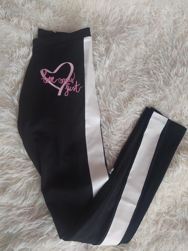 Лосины без утепления, со стороны акцентная белая прорезиненная линия и розовое сердце. Новые в наличии размер 11-12роков(152см) замеры дам,пишите