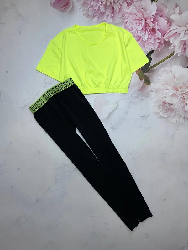 Стильний і яскравий спортивний набір Guess Стан ідеально Лосини Довжина 81. Крок 63. ПОТ 27 Топ-футболка Довжина 32. ПОГ 40.