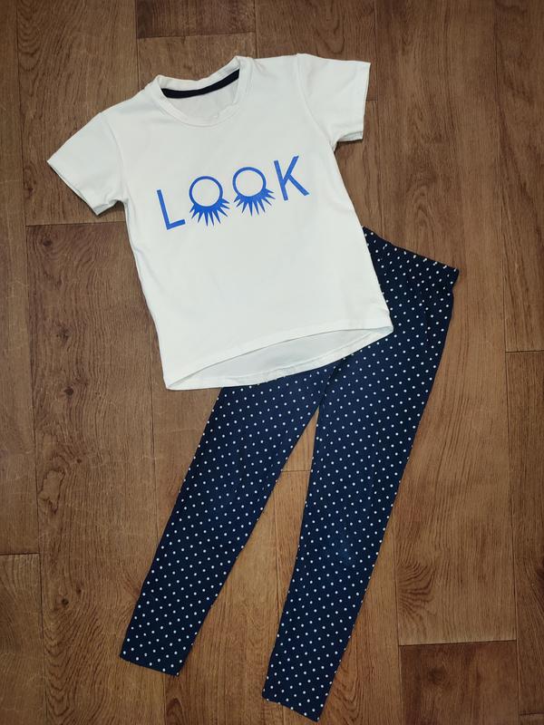 Комплект футболка та лосіни для дівчинки приблизно 5-6років. В хорошому стані. Заміри: футболка - довжина 38-43см, напівоб'єм у грудях 31см, плечі 27см; лосіни - довжина 68см, крок 49см, напівоб'єм у талії 21см, напівоб'єм у бедрах 30см. Дивіться також інші мої оголошення)