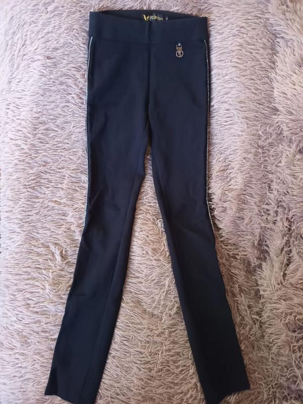 Брюки на девочку Тянутся, на резинке размер 24 имеют блестящие полоскания по бокам замеры: пот - 31см поб - 35см длина - 90