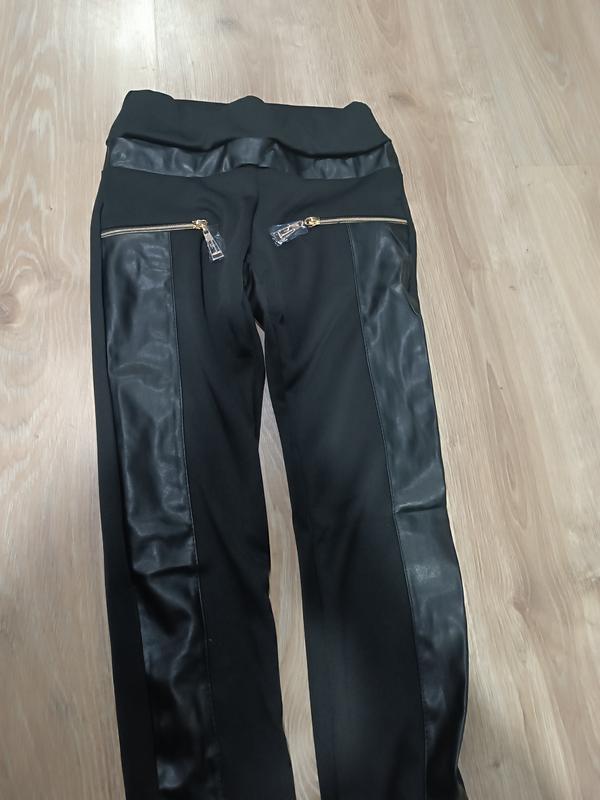 Комбіновані стильні штани. Модель виконана з дайвінгу та стьобаної еко-шкіри. Висока лінія талії, широка гумка на поясі. Позаду дві накладні кишені. 34: Длина 81 Шаг 61 Талия на резинке тянется до 72 36: Длина 87 Шаг 65 Талия на резинке тянется до 76 38: Длина 90 Шаг 68 Талия на резинке тянется до 78 40: Длина 95 Шаг 73 Талия на резинке тянется до 84