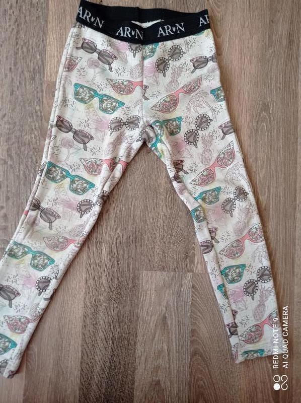 Лосіни для дівчинки,всередині легенька махра,модняві,класний принт,на 5-6-7років, довжина від пояса 71см,шаг 50см