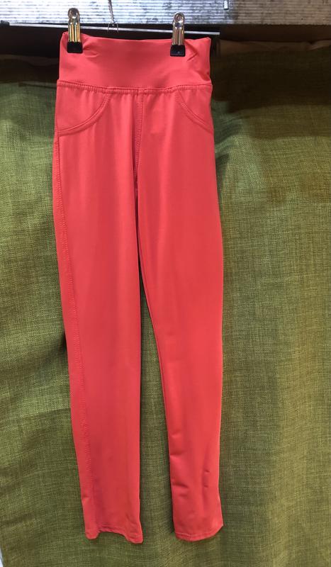Лосини на дівчинку Тканина: біфлекс Дуже добре тягнуться З імітацією кишень В наявності 3 шт. різного розміру та кольору: 1. Коралові. Ззаду декоровані змійками. Півобхват талії - 22 см Півобхват стегон - 30 см Довжина - 77 см 2. Сірі Півобхват талії - 22 см Півобхват стегон - 30 см Довжина - 74 см 3. Малинові Півобхват талії - 22 см Півобхват стегон - 28 см Довжина - 77 см