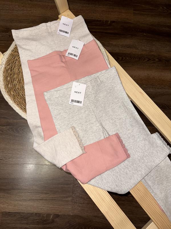 Лосінки від Next✅✅✅ В наявності у 3-х кольорах: ▫️ніжно-рожевий ▫️сірий ▫️бежево-кремовий Склад: 92% бавовна, 8% еластан. Розміри: ☑️5-6 р.(110-116 см) - довжина 59 см+1 см рюшики, крок 39 см ☑️6-7 р.(116-122 см) - довжина 61 см+1 см рюшики, крок 41 см