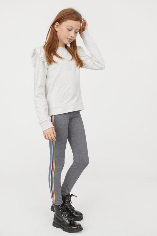 Леггинсы H&M в отличном состоянии, носили пару раз. Р. 13-14. 62% поліестер, 33% бавовна, 5% еластан. Довжина 96 см, шаг 76,5 см, НОТ 33 см, НОС 43 см.