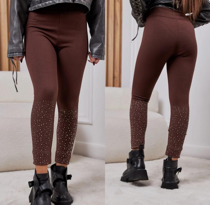 Арт 5725 Невероятные лосины Ткань рубчик стрейч на флисе украшено блестящими камнями мягенькое,гарно тянутся Высокая посадка Супер качество рост/длина/шак/пот похибка+-2см 146-152/86/57/27-1шт Тан