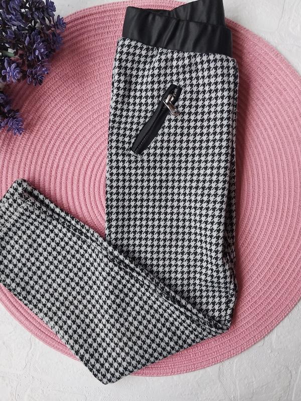 📌 Лосини в принт "гусяча лапка"🪿 Імітація кишень Плотна тканина 📐 Заміри Довжина 56 см Крок 40 см Пояс 20.5 см Посадка 20 см 🏷Стан є незначні потерпості на поясі (див. фото)