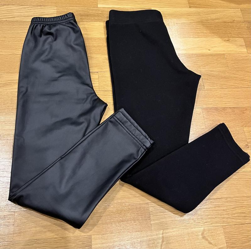 Утеплені штани в ідеальному стані. Заміри: перші еко-шкіра довжина 69 см., внутрішній крок 50 см.; другі довжина 66 см., внутрішній крок 51 см. Ціна за одні 260, дві пари 460грн.
