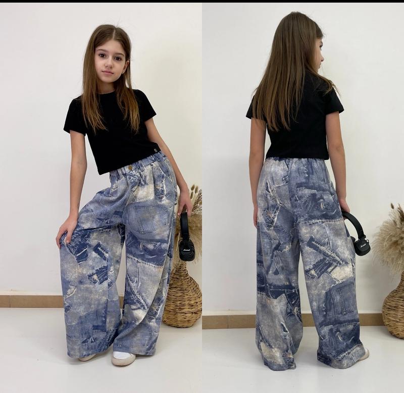 арт 5991 Джинсы легкие широка модель именно то, что нуждаются в самых требовательных модницах! производитель Китай тканина легкий джинс В поясе под резинку есть карманы рост/размер/длина/шак/пот/пос похибка+-2см 134-140/130/81/51/24/48-4шт 140-146/140/83/54/25/49-1шт 146-152/150/86/56/26/50-1шт