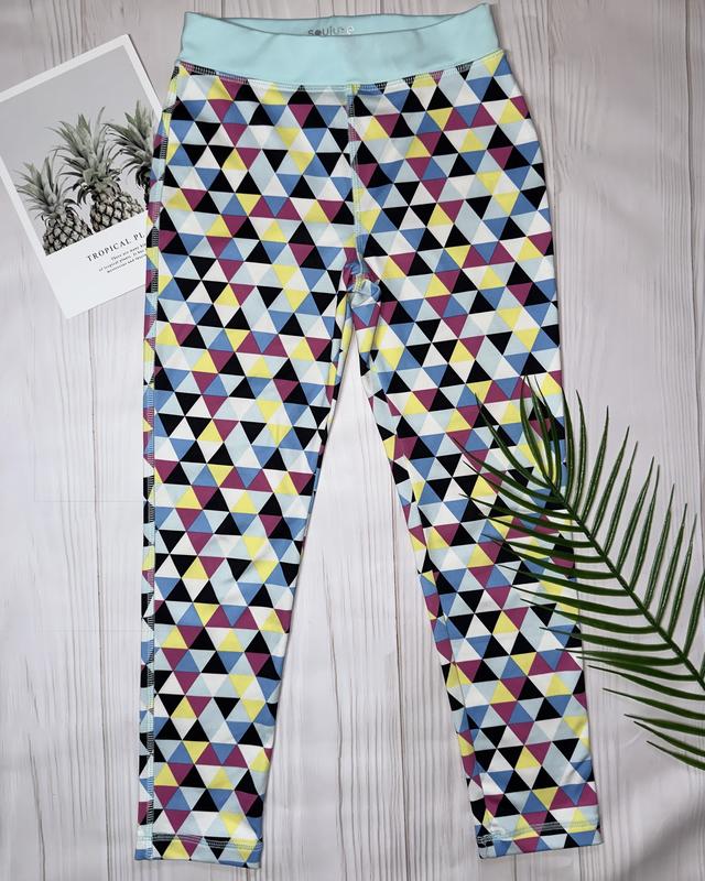 Дуже яскраві лосини в ідеальному стані💙 Заміри: ПОТ 27 см ПОБ 36 см Довжина 71 см Кроковий шов 51 см Дуже еластична тканина. Чудово тягнуться та гарно сидять по фігурі. Мають комфортну посадку. Обміну та повернення немає.