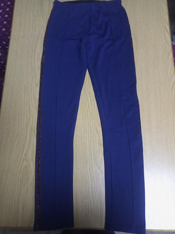 Сині лосіни з блискучою стрічкою збоку. На зріст 134-140.
