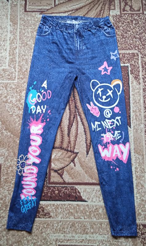 Нові лосини з тонкого трикотажу, імітація джинсів. Довжина 98/69см, НОТ 33-40см, НОС 42-52см.