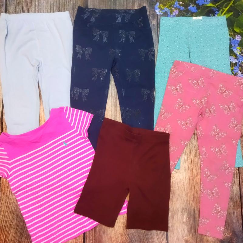 Фирменный набор Лосин для девочки 6-7 лет. В наборе разные бренды, состояние вещей отличное, дефекты отсутствуют В набор входит: Лосини- H&M Лосини - TU Лосини - Next Лосини - Primark Футболка - PoLo Шорти - George