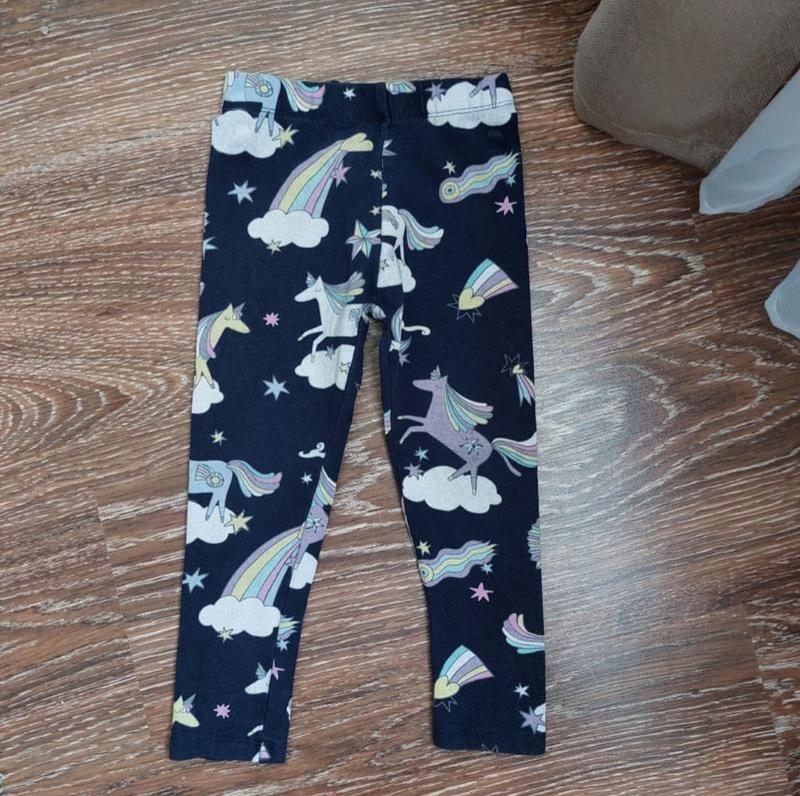 Темно-сині лосинки в яскравий принт від Next На 2-3 роки В дуже доброму стані, без недоліків Довжина 48 Пот 21 Посадка 18 Поб 26,5