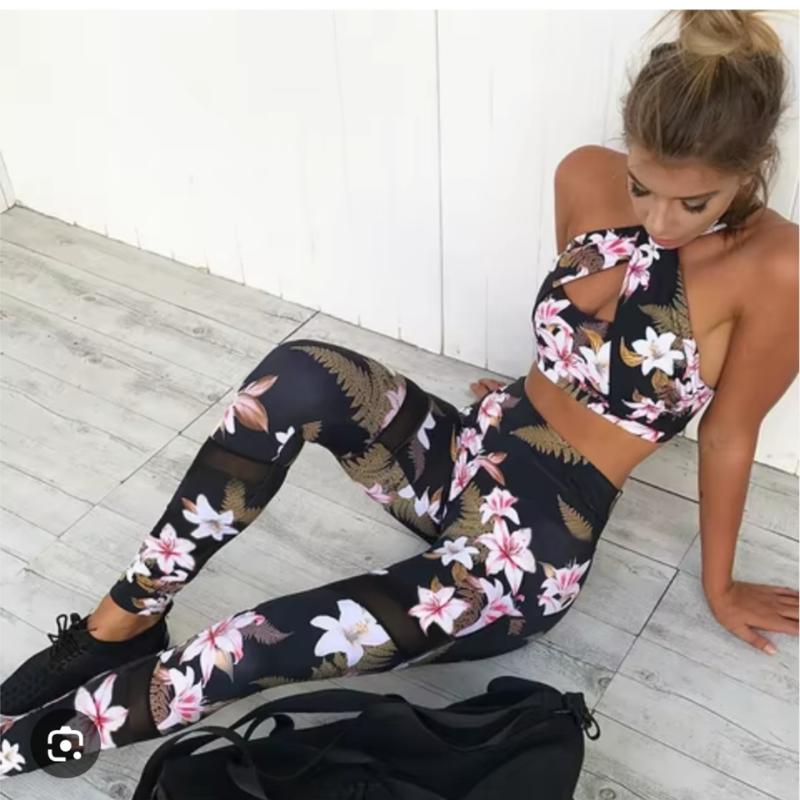 Спортий костюм лосини і топ в квітковий принт з сіточкою pulse