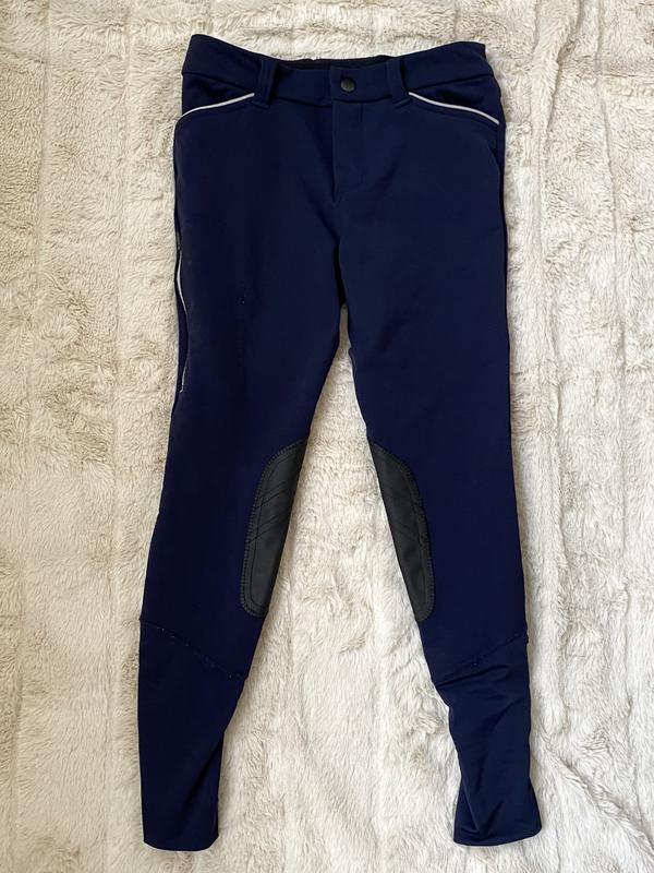 Лосини для верхової їзди дитячі Fouganza з шкіряною колінною леєю в дуже гарному стані На поясі є резинка, можна затягнути Заміри є на фото. Десь на 6-8 років Крок 55, довжина 74 Синього кольору Чудовий варіант для дитини для занять верховою їздою