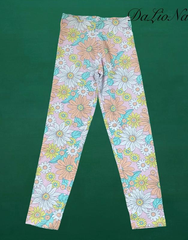 ‼️‼️Розпродаж‼️‼️ На фото представлені дитячі лосини з квітковим принтом. Вони мають світло - рожевий фон з візерунком із ромашок та інших польових квітів білого, жовтого, помаранчевого та блакитного кольорів. Тканина: бавовна, еластан. Розмір: 7 років. Заміри: - довжина пояса: 23 см., тягнеться до: 28 см.; - довжина лосин від пояса: 70 см.
