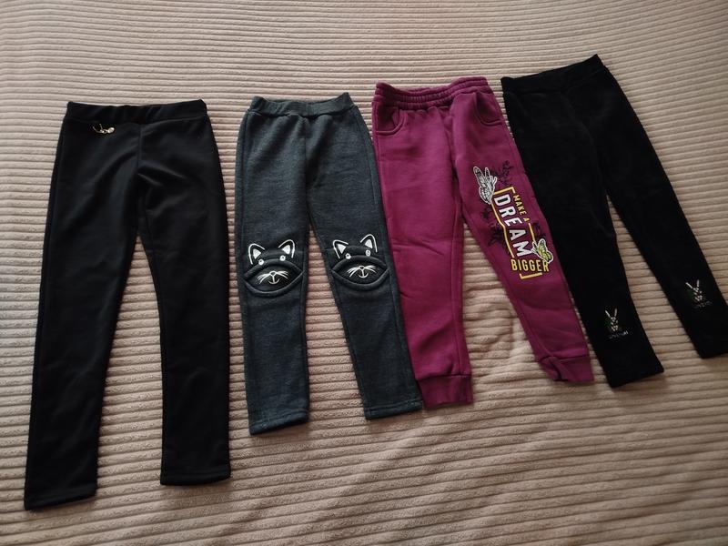 Лосини на дівчинку на флісі, на міху. Чорні з брошкою на флісі , довжина 71 нові (250) Сірі з котиками на міху, довжина 64 б/у (180) Штани трьох нитка на флісі сливові , довжина 65 , стан нових (200) Чорні велюрові на міху,розмір 70, довжина 66 , нові (280)